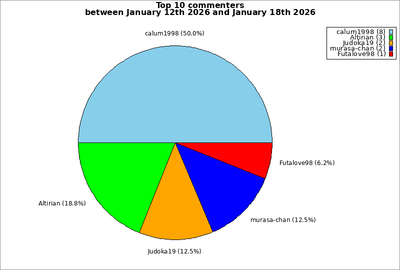 | Top 10 commenters between January 12th 2026 and January 18th 2026 | ||