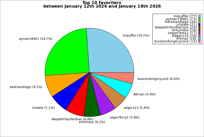| Top 10 favoriters between January 12th 2026 and January 18th 2026 | ||