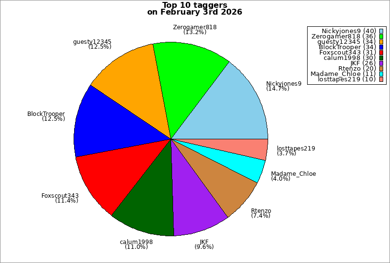 | Top 10 taggers on February 3rd 2026 | ||