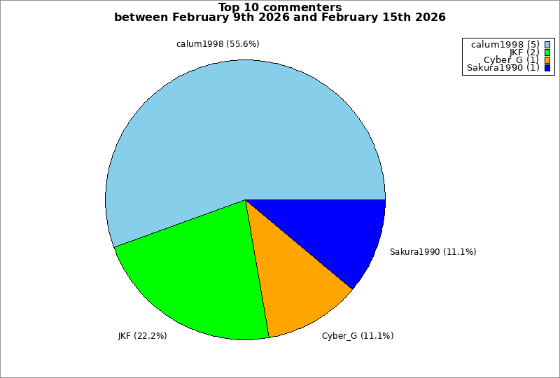 | Top 10 commenters between February 9th 2026 and February 15th 2026 | ||