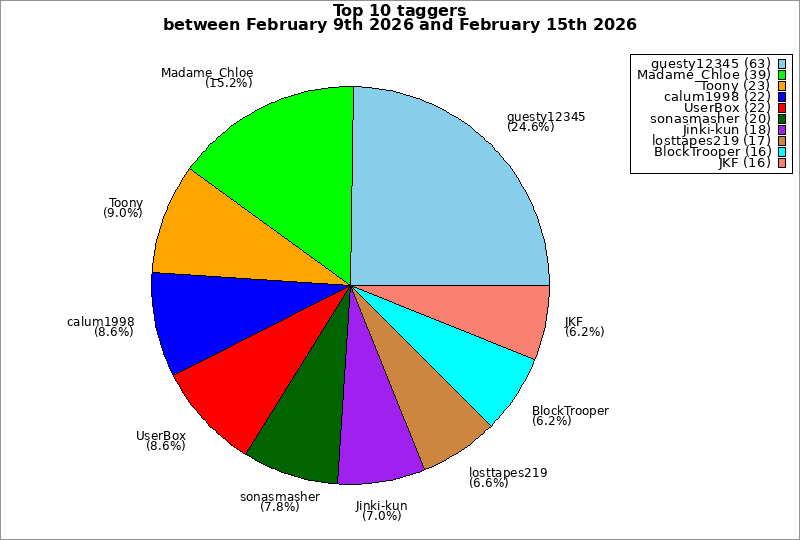 | Top 10 taggers between February 9th 2026 and February 15th 2026 | ||