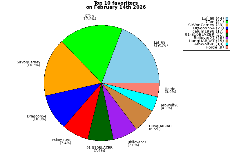| Top 10 favoriters on February 14th 2026 | ||
