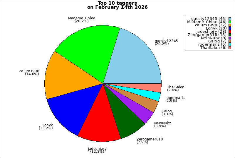 | Top 10 taggers on February 14th 2026 | ||
