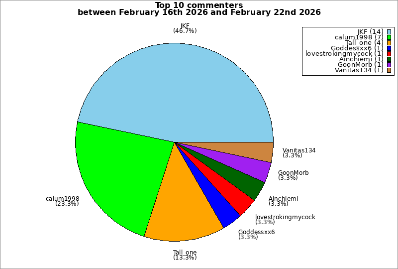 | Top 10 commenters between February 16th 2026 and February 22nd 2026 | ||