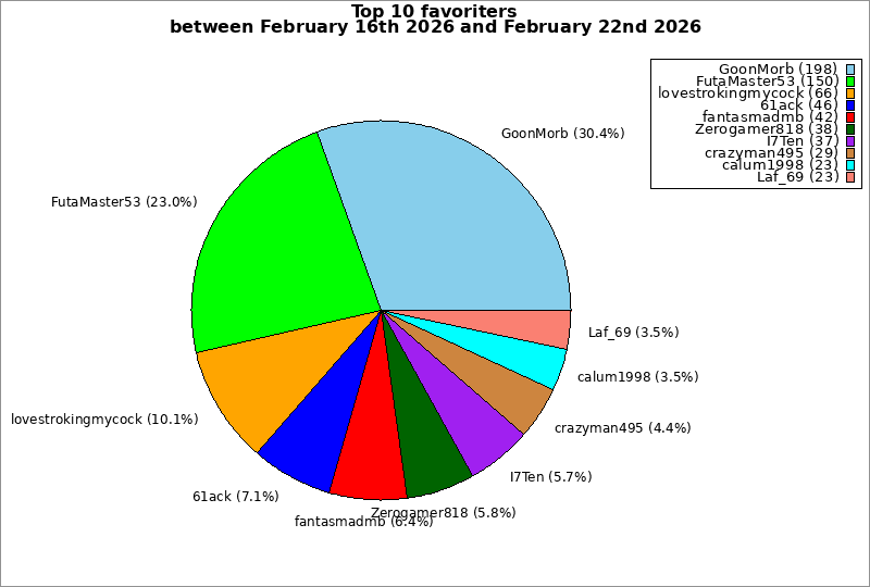 | Top 10 favoriters between February 16th 2026 and February 22nd 2026 | ||