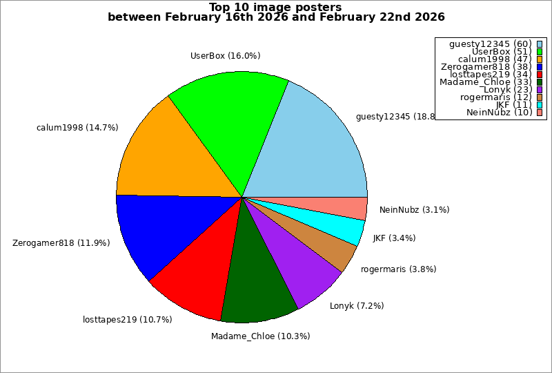| Top 10 image posters between February 16th 2026 and February 22nd 2026 | ||