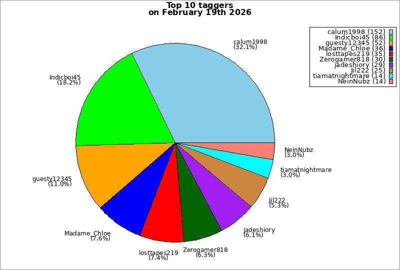 | Top 10 taggers on February 19th 2026 | ||