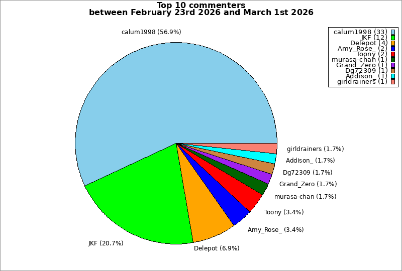 | Top 10 commenters between February 23rd 2026 and March 1st 2026 | ||