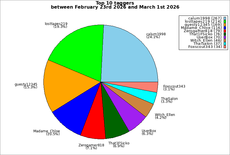 | Top 10 taggers between February 23rd 2026 and March 1st 2026 | ||