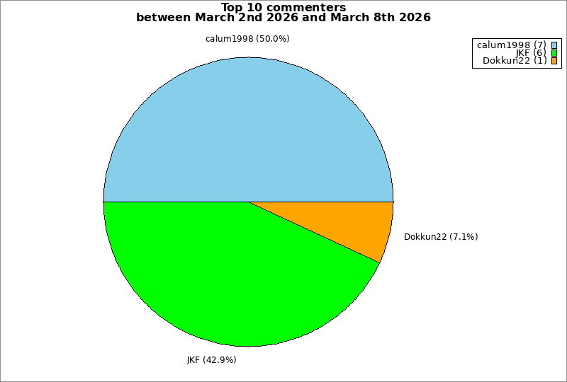 | Top 10 commenters between March 2nd 2026 and March 8th 2026 | ||