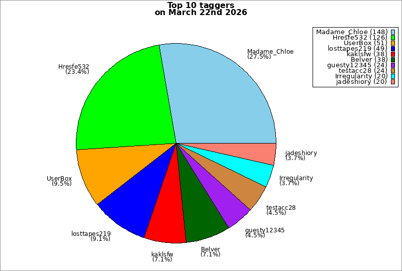| Top 10 taggers on March 22nd 2026 | ||